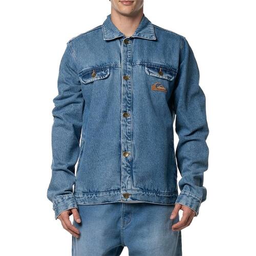 Jaqueta QuikSilver feita em modelagem regular, lavagem delavê, recortes frente e costas, bordado logo aplicado no peito e bordado assinatura aplicado nas costas, bolsos embutidos no peito com lapela e fechamento de botão metal, bolsos embutidos laterais e fechamentos em botões personalizados QuikSilver.