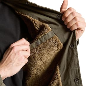+ Fecho frontal com zíper e detalhe elástico no punho e na barra inferior