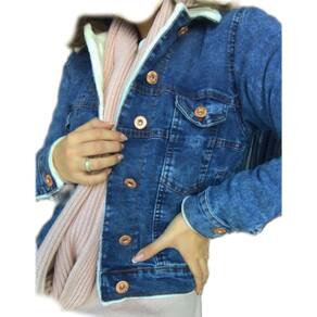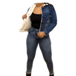Jaquetinha Curta Jeans Feminina com com bolsos e muito elastano, toda forrada com tecido peluciado, confortável e bem quentinha.