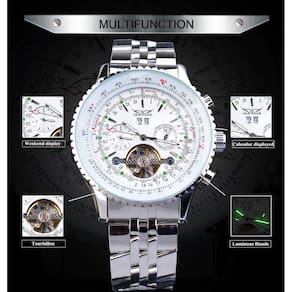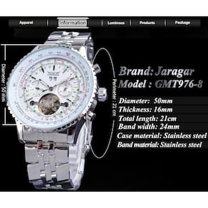 Nome da marca: T-WINNERProfundidade de resistência à água: Não à prova d' águaFecho: Fecho dobrável com segurançaEstilo: Luxury/ruMovimento: Vento automáticoComprimento da pulseira: 23Material do estojo: STAINLESS STEELCaracterística: Data automáticaCaracterística: Calendário completoNúmero do modelo: JARAGAR JA034Formato do Estojo: ROUNDLargura de banda: 22mmEspessura do estojo: 15mmTipo de material do visor: HardlexMaterial das Caixas e Estojos: PapelTipo de Item: Relógios de pulso mecânicoDiâmetro do visor: 50mmTipo de matéria da pulseira: STAINLESS STEEL