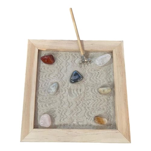Jardim Zen Japonês Feng Shui Madeira Meditação Quadrado 15cm O Jardim Zen é Tradicionalmente utilizado como elemento de relaxamento e meditação na cultura japonesa, em que o mar é simbolizado pela areia e as pedras representam os obstáculos e os contratempos que enfrentamos no nosso dia a dia. Enviamos o seu Kit em até 24 horas após a confirmação de pagamento! Contém: 1x Areia Branca 1x Rastelo 1x Base composta de Madeira 7 pedras naturais Ótimos acabamentos e detalhes Detalhes Técnicos: Tamanho: 15x15 cm Caso tenha alguma dúvida nos mande mensagem que respondemos rapidinho para te ajudar da melhor forma possível! Marca: META ATACADO