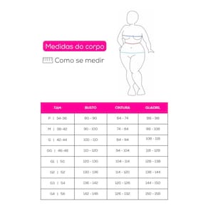 Medidas da Modelo: Altura:160cm, Cintura: 71cm, Quadril: 99cm, Busto: 90cm