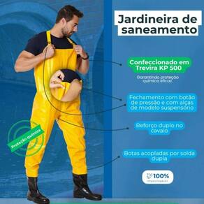 O grande diferencial desse modelo é a integração das botas ao conjunto. As botas acopladas são unidas à jardineira por meio de solda dupla, garantindo vedação eficiente e evitando qualquer tipo de infiltração, mesmo em condições extremas. Com numeração que varia do 39 ao 43, o produto atende uma ampla variedade de usuários, proporcionando conforto e segurança no calce.