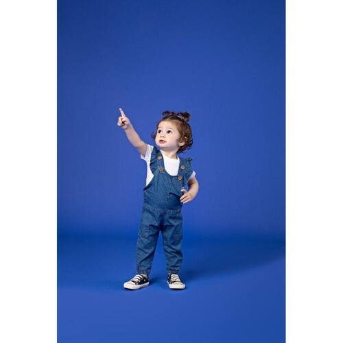 Jardineira Jeans da marca Jeito de Criança umapeça clássica trazendo muito estilo e modernidade para sua pequena em seus dias