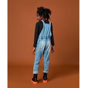 Jardineira jeans Wid leg Jeito de Criança moderna, leve e muito estilosa para sua pequena.