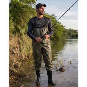 Jardineira Macacão Impermeável com Botas Pescaria Vertice Tam. GGX - Verde - 41