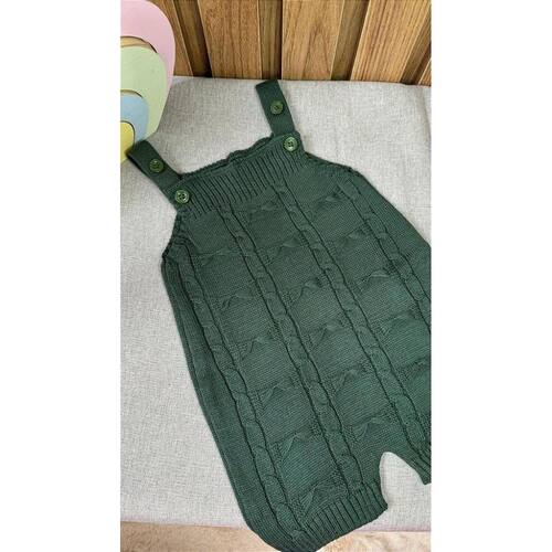 Jardineira Romper Trabalhado Verde Escuro - P - Verde