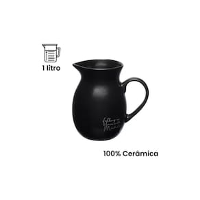 Jarra Ceramica Manhattan Preto 1l Jarra ceramica manhattan PRETO 1L Com a Jarra De Cerâmica Preta Manhattan 1l Porcelana da marca Haskraft, a elegancia e sofisticação vai tomar conta da sua mesa. Com um diâmetro de 11 cm e uma altura de 16 cm, esta jarra tem a capacidade perfeita para servir suco, água ou leite para a sua família ou convidados. A sua capacidade de 1 litro é ideal para o uso diário, tornando-a uma escolha prática e funcional para qualquer lar.