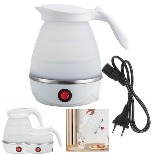 Jarra Chaleira Eletrica Silicone Retratil 600 Ml Cafe Cha Bebida Quente Ferve Agua Passeio Viagem