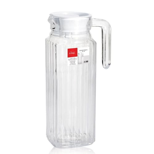 Jarra Com Tampa 1L Class Home Excelente jarra para servir Refrescos no dia a dia. Marca: Class Home Altura: 25cm Cor: Transparente Material: Vidro/ Tampa de Plástico Capacidade: 1,0 Litro Cuidados: Para limpeza, utilizar detergente neutro e esponja macia Ean: 7899887402105