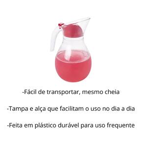 A Jarra de Plástico com Tampa e Alça 2L é prática, leve e ideal para o dia a dia. Perfeita para servir sucos, água, chás gelados ou refrescos, sua capacidade de 2 litros é ideal para famílias ou reuniões. O design funcional inclui alça ergonômica, que facilita o manuseio, e tampa que protege as bebidas de impurezas e preserva o sabor. Fabricada em plástico resistente e livre de BPA, é segura para contato com alimentos e fácil de limpar, sendo indispensável para a rotina da sua cozinha. Com cores modernas e acabamento que combina com qualquer ambiente, é a escolha ideal para quem busca durabilidade e praticidade com ótimo custo-benefício.