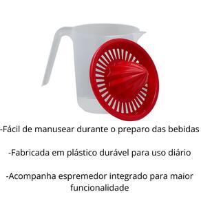 A Jarra de Plástico com Espremedor 1L é a solução prática para preparar sucos naturais diretamente no recipiente, economizando tempo e utensílios. Com capacidade de 1 litro, é perfeita para uso diário, seja no café da manhã ou em momentos de refresco. O espremedor acoplado facilita extrair o máximo de suco de frutas cítricas, enquanto a tampa protege contra impurezas e evita respingos. Produzida em plástico resistente e livre de BPA, garante segurança no contato com alimentos e fácil higienização. Compacta, leve e funcional, essa jarra é indispensável para quem busca conveniência, saúde e sabor fresco na rotina. Especificações: - Marca: Plasutil; - Modelo: 003651; - Capacidade: 1000ml; - Com Tampa: Sim; - Dimensões: 16,5 x 11,5 x 14,5 cm; - Diâmetro: 11,5 cm; - Peso: 102g; - Material: Polipropileno; - Com alça: Sim; - Aplicação: Indicada para preparar sucos naturais diretamente no recipiente; - Recomendações: Após espremer frutas cítricas como limão e laranja , lavar imediatamente para evitar manchas e odores; - : 3 meses 90 dias . Conteúdo da embalagem: -01 Jarra de Plastico com Espremedor 1L. Marca: Não Informado