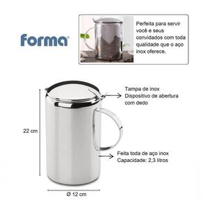 Materiais:: Inox | Comprimento (em cm):: 17 | Largura (em cm):: 12 | Altura (em cm):: 22 | Diametro (em cm):: 0 | Peso liquido (em gr):: 525 | Capacidade (em gr):: 0 | Capacidade (em ml):: 2300 | Comprimento da emb. (em cm):: 16,5 | Largura da emb. (em cm):: 15 | Altura da emb. (em cm):: 23,5 | Peso bruto (em gr):: 640
