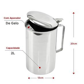 Jarra De Suco Inox 2l Tampa e Aparador De Gelo Água Refresco Essa Jarra Inox possui capacidade para 2 litros, ela é muito versátil pode ser usada tanto para uso residencial como profissional em restaurantes buffet e hotéis, para evitar respingos ela possui um aparador de gelo fico na ponta e tampa que evita que caia partículas ou mosquitos na bebida e por falar em bebidas ela pode ser usada tanto como jarra para suco, chá, cerveja ou água. PRINCIPAIS DESTAQUES: - Capacidade 2 Litros- Material Inox- Com Aparador de Gelo e Tampa- Dimensões: 20 x 13cm altura x diâmetro