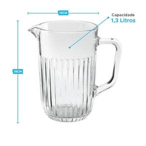 - Dimensões: 14 x 19cm diâmetro x altura - Capacidade de 1,3 litros - Detalhe externo com textura canelada - Jarra de vidro resistente e durável - Design elegante e moderno - Alça ergonômica para facilitar o manuseio