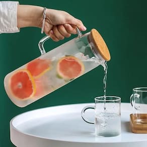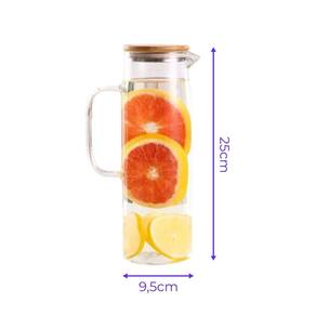 Design e Funcionalidade: - Material Premium: O vidro borossilicato cristalino revela a transparência e brilho, conferindo uma aparência sofisticada. - Capacidade Generosa: Com 1500ml, ela é ideal para servir sucos, chás, águas aromatizadas e mais. - Tampa de Bambu com Vedação Hermética: Feita de bambu natural com vedação em silicone, garante uma selagem perfeita, evitando vazamentos e mantendo a frescura dos líquidos. O bambu ainda traz um toque rústico e moderno, além de ser sustentável e bacteriostático. - Interior em Aço Inoxidável: Proporciona durabilidade e ajuda a manter a temperatura das bebidas por mais tempo. - Bico em V e Alça Anatômica: O bico evita respingos e facilita o servir, enquanto a alça oferece conforto no manuseio.