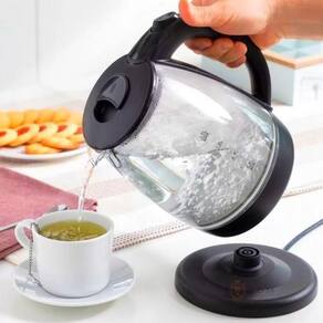 Jarra De Vidro Elétrica Chaleira Transparente Com Led 1,8 Litros Que tal nesse friozinho preparar e beber aquele delicioso café, chá ou chimarrão bem quentinho com muito conforto e facilidade?A Jarra Elétrica Vitreous além de ser super moderna, pratica e ter um design incrível para deixar a sua cozinha ainda mais bonita, vai aquecer a água mais rápido que o fogão e o micro-ondas. Com a capacidade de até 1,8L , essa magnifica jarra elétrica vai trazer mais praticidade ao seu dia a dia.Pensando na sua segurança e saúde a chaleira elétrica possui jarro de vidro que não solta substancias químicas prejudiciais a saúde, luz de led que indica que a água está aquecendo, desligamento automático que proporciona segurança e economia de energia e alças de polipropileno que permanece fria mesmo quando a jarra está quente protegendo suas mãos de queimaduras.Com a Jarra Vitreous e todos seus benefícios você terá muito mais tempo para cuidar do que realmente te importa no seu dia a dia preparando suas bebidas quentes muito mais fácil e o seu material exclusivo de vidro pode proporcionar muito mais saúde pois não libera toxinas metálicas e plásticas!!!A Jarra Vitreous vai ser um item muito útil e indispensável na sua casa.Isso mesmo, ela vai proporcionar mais prazer, bem estar e liberdade para você, deixando o seu dia mais alegre, harmonioso, produtivo liberando mais o seu tempo com muito menos trabalho.Se isso faz sentido para você tornando sua vida melhor, adquira já a linda jarra Vitreous.ESPECIFICAÇÕES:- Capacidade: 1,8 Litros- Potencia: 1000W- Temperatura: Até 100ºC- Tamanho do fio: 75cmDIMENSÕES:- Altura aprox. : 21cm- Largura aprox. : 15,5cm- Largura com alça aprox. : 21cmOBS: POSSUI SOMENTE DOIS PONTOS DE LED BEM PRÓXIMO AO CABOConteúdo da embalagem: 01 Jarra De Vridro Elétrica *Garantia: 03 meses contra defeitos de fabricação.*Imagens Meramente Ilustrativas.*Objetos de decoração das fotos não estão inclusos.*As cores podem variar conforme monitor/smartphone utilizado para a visualização do anúncio. Ean: 7908281365920