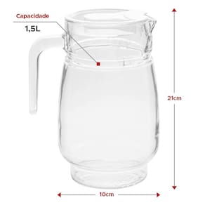 Jarra de Vidro Grosso Lisa com Tampa Acrílico 1,5 Litros A Jarra de 1,5 litros é a escolha perfeita para uso doméstico ou comercial em restaurantes, buffets e bares. Com seu vidro grosso, oferece maior resistência a pequenos impactos do dia a dia, garantindo durabilidade e segurança. Sua tampa de acrílico mantém as bebidas frescas por mais tempo e evita derramamentos indesejados. Desfrute de uma jarra versátil e funcional, que eleva a experiência de servir suas bebidas favoritas.