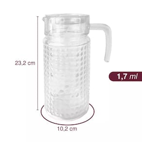 Transforme suas experiências culinárias com a Jarra de Vidro com Tampa Transparente da Dolce Home. Desfrute de uma fusão perfeita entre elegância e praticidade em cada gole. Com uma capacidade generosa de 1,7 litros, esta jarra é a escolha ideal para servir sucos, água, chá gelado e muito mais, elevando o charme de sua mesa.
