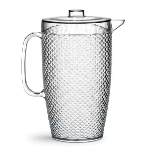 Esta linda Jarra Diamante Crystal é um produto de alta qualidade com brilho e resistência, além de possuir um design arrojado, ela possui uma superfície interna lisa que facilita a lavagem e é feito em material altamente resistente. Dimensões da jarra: Alt. 26 cm X Diam. 14 cm X Larg 17 cm Capacidade da jarra: 3 litros Fabricante: Niquelart Material: Acrílico transparente Instruções de uso: Suporta máquina de lavar; Não suporta produtos químicos; Lavar com sabão neutro; Boa resistência a mudanças de temperaturas. Foto: Imagem Meramente Ilustrativa. Garantia Fabricante . Contra Defeitos de Fabricação Ean: 7896594843702