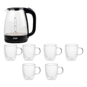 Jarra De Vidro Elétrica 1,8 L + 6 Caneca Vidro Duplo 350Ml
