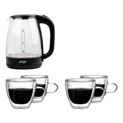 Jarra De Vidro Elétrica 1,8L + 4 Xícaras De Vidro Duplo 120ml
