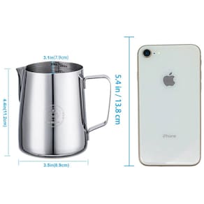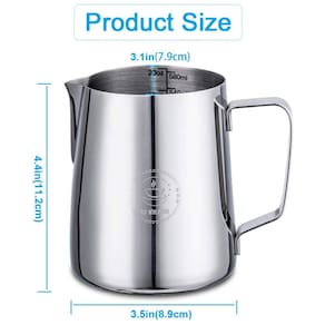 Moda e durabilidade O jarro para espuma de leite é feito de aço inoxidável 304 de alta qualidade, forte e durável, acabamento requintado.não ferrugem, anticorrosão, inquebrável para uso diário. Muito fácil de limpar após o uso. Conveniência e precisão Esta precisa capacidade de 580 mL de batedor de leite gravou a medida do líquido em ambos os lados, torna o fácil de ler, é perfeito para 2 ou 3 xícaras de cappuccinos ou expresso. Projeto de humanização Depois de muitos experimentos, fizemos um projeto de boca estreita exclusivo para este jarro para espuma de leite em aço inoxidável, que controla a velocidade e o volume do derramamento de líquido com precisão, equipado com uma caneta latte art, pode criar uma variedade de belos padrões. a alça segura não esquenta, ajuda você a se concentrar na arte do latte e não se preocupe em se machucar. Ampla aplicação O jarro de leite fumegante pode ajudá lo de muitas maneiras, como espumar ou creme de leite fumegante para um café com leite, medir líquidos, servir leite ou creme. Você pode usá lo em casa, escritório, café ou hotel. O jarro de espuma também pode ser um belo presente para festas ou festivais Marca: Não Informado