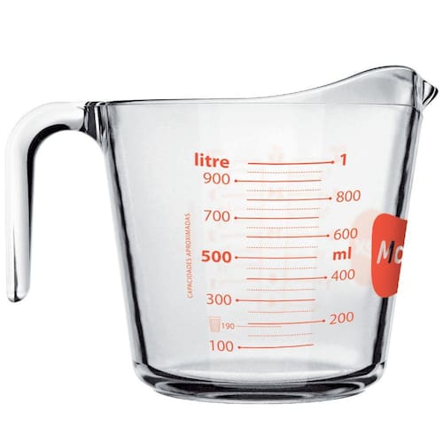 Jarra Medidora De Vidro 1L Marinex Jarro De Medição Com Alça E Bico Direcionador.