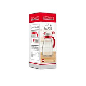 Informações Adicionais: - Marca: Hauskraft - Coleção: Paládio - Validade: Indeterminada - Capacidade: 980ml - Tamanho Aproximado: 22,5 x 10cm Ø - Tipo de Produto: Jarra Paládio de Vidro Vermelha 980ml - Cor: - Jarra: Transparente / - Tampa: Vermelha com Branco - Composição: Vidro, Plástico (Polipropileno), Silicone e Ferro - Pacote Contém: 1 Unidade - Garantia: 90 dias contra defeito de fabricação - Observação: As cores dos produtos podem sofrer variações em função da características do monitor e do ambiente durante a visualização.