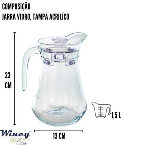 Com um design liso e transparente, esta jarra é ideal para servir uma variedade de bebidas, desde sucos refrescantes até coquetéis sofisticados. A tampa de acrílico mantém suas bebidas frescas por mais tempo, enquanto o design funcional facilita o serviço.Características Principais:Design Elegante: Vidro transparente para uma apresentação sofisticada.Capacidade Ideal: 1,5 litros, perfeita para atender a várias ocasiões.Versatilidade de Uso: Adequada para servir uma variedade de bebidas.Tampa de Acrílico: Mantém as bebidas frescas e protegidas contra impurezas.Alça Ergonômica: Facilita o manuseio e o serviço.Especificações Técnicas:Material: Vidro Transparente e Tampa de AcrílicoCapacidade: 1,5 LitrosDesign: Lisa e FuncionalMarca: WincyInstruções de Uso:Limpeza Inicial: Lave a jarra antes do primeiro uso.Preparação das Bebidas: Sirva sucos, coquetéis ou outras bebidas desejadas.Tampa de Acrílico: Utilize a tampa para manter as bebidas frescas durante o serviço.Alça Ergonômica: Facilite o transporte e o despejo das bebidas.Limpeza e Manutenção: Lave a jarra e a tampa após o uso, preferencialmente à mão.Cuidados:evite impactos bruscos para prevenir danos ao vidro.Não utilizar objetos abrasivos na limpeza para preservar a transparência do vidro.Não aquecer diretamente em fontes de calor, como fogões ou fornos. Somos loja física com mais de 50 anos de tradição.Agradecemos a visitaEstamos aguardando sua compra Ean: 7899755697008