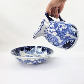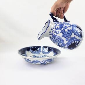 Jarro Com Bacia Decorativo Azul E Branco Vaso Bule Jarro com Bacia de Porcelana Azul e Branca - Elegância e Sofisticação para Sua Casa Inigual Decor O Jarro com Bacia de Porcelana Azul e Branca da Inigual Decor é a escolha perfeita para quem busca adicionar um toque de classe à sua decoração. Feito com porcelana de alta qualidade e decorado com um padrão clássico azul e branco, este conjunto é um símbolo de elegância atemporal. Principais Características: