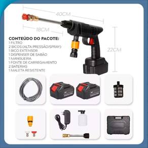 Jato de alta pressão para limpeza rápida e eficiente Descrição Conteúdo da embalagem 1 lavadora potente 1 mangueira de alta pressão 1 Ferramenta de aplicação de alta pressão 1 bico ajustável 1 manual de instruções 1 adaptador para conexão de água Características Potência de limpeza alta e eficiente Compacta e fácil de armazenar Jato de água ajustável para diferentes tipos de superfícies Ideal para limpeza de carros, motos, pátios, calçadas, jardins e muito mais Design ergonômico para maior conforto durante o uso Resistente e durável Sistema de segurança integrado Especificações Potência máxima: 1500w Pressão máxima: 100 bar Capacidade do reservatório: 1.5 litros Comprimento da mangueira: 5 metros Material: plástico de alta resistência Marca: Não Informado