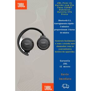 1 JBL Fone de Ouvido sem Fio Tune 520BT Dobrável Bateria 57h,