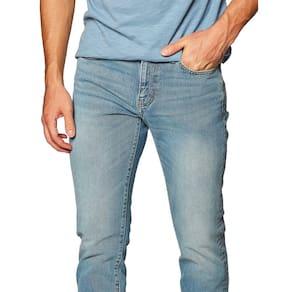 - Design justo: esses jeans masculinos são desenhados com uma perna cônica e são ajustados até o quadril e a coxa, enquanto ficam abaixo da cintura