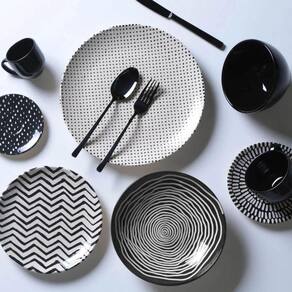 Moderno - Encontrada desde 1800 a.C. nas famosas porcelanas gregas, as linhas em zigue zague, originalmente pretas e brancas, em forma de "V" estampam geometricamente a linha Chevron. O termo que significa "Escama de Peixe", mas em sua mesa ele ganha outro significado.