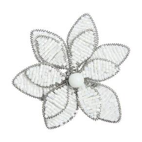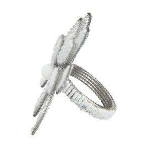O Jogo de Argola para Guardanapo Camelia com duas peças produzidas 60% em miçanga de plástico e 40% em vidro com estrutura de metal. Em formato delicado de flor, as pétalas possuem as miçangas fixadas dando um efeito bonito e texturizado.