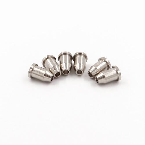 Jogo de Buchas traseiras cromadas para passagem de cordas nas instalações de pontes que possibilitem a passagem das cordas por trás do instrumento, estilo telecaster, ficando um acabamento premium.