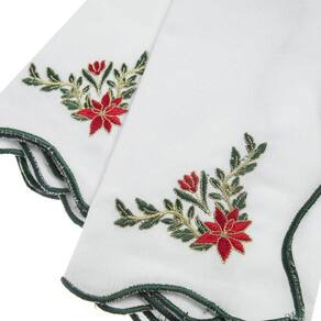 O Jogo de guardanapos Natal Folk possui 2 peças, cada uma medindo 45 cm x 45, confeccionadas 100% em algodão. Desenvolvidas para contribuir com a decoração da sua mesa posta natalina na temática do Natal tradicional. Apresenta uma estética delicada, com bordas onduladas com um delicado bordado na ponta.