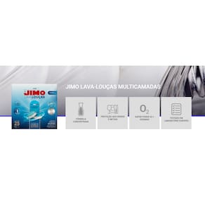JIMO LAVA LOUÇAS MULTICAMADAS 25 PASTILHAS DE 15gJIMO Lava-Louças Multicamadas é um detergente em pastilhas para máquinas de lavar louças, testado em laboratório europeu por especialistas dentro dos padrões de mais alto nível. Por ser multicamadas, o produto aumenta a sua performance através da separação de alguns ingredientes: as enzimas, que acabam com as sujeiras mais resistentes; e o oxigênio ativo, que remove manchas difíceis das louças. Sua fórmula concentrada dá proteção aos metais e também aos vidros, não deixando-os opacos. Contém tensoativos biodegradáveis. Como Usar:Elimine o excesso de resíduos antes da lavagem.Carregue a máquina de acordo com as indicações do fabricante. Cuidado para não obstruir os jatos de água.Utilize uma pastilha por lavagem.Coloque a pastilha no compartimento do detergente.
