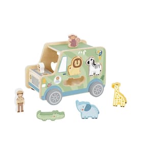 Feito em madeira de alta qualidade e pintado com tinta não tóxica e segura para crianças, este jipe ??de madeira com animais da selva é uma escolha fantástica para crianças aventureiras e amantes dos animais.