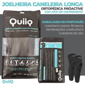 Joelheira Caneleira Longa PróActive QuiiQ com 47cm de comprimento. Oferecendo máxima compressão, estabilidade e conforto com sua dupla haste flexível de aço leve e anel de silicone patelar.