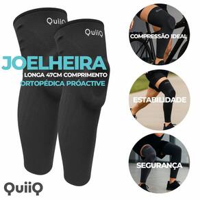 -A Joelheira caneleira Longa Pró Active da QuiiQ é desenvolvida com tecido tricô 3D de alta tecnologia, oferecendo compressão, estabilidade e conforto.