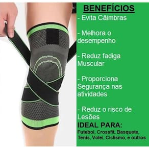 Joelheira ortopedica compressão estabilizadora elastica Cor: verde Tamanho: unico A joelheira de compressão de 360º graus, garante modelagem anatômica com ajuste perfeito, tendo a função de retardar o desgaste muscular, ou seja, em uma corrida, o cansaço que viria em determinado momento, passa a vir depois. Com isso, o atleta terá melhor desempenho e menos danos musculares. Produto com alta elasticidade, promovendo um constante aquecimento e compressão na área afetada. Proporciona diminuição de dor e uma recuperação mais rápida. Benefícios - diminuem o acumulo de lactato; - evitam câimbras; - minimizam a fadiga muscular; Ideal para atividades como - futebol, vôlei, basquete, tênis, corrida, ciclismo, skate e outros; Tamanho único Altura 27 cm Largura 17cm Circunferência de perna recomendada de 45 a 55 cm Peso recomendado de 60 a 85 kg Itens inclusos : 1 unidade joelheira ortopedica de compressão Marca: Lb Shopmix