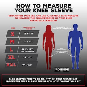 SIZING: To find your correct size please use a flexible tape measure. 1. Stand upright and straighten your legs. 2. Measure Circumference of knee around center of kneecap. If in between sizes it is recommended you start with a larger size. S: 11.8" - 12.8" M: 12.5" - 14.0" L: 13.8" - 15.5" XL: 15.3" - 16.7" XXL: 16.5" - 18.0"