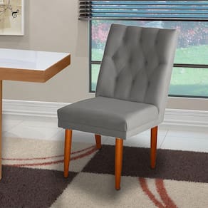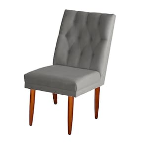 Ela é fabricada em madeira de eucalipto refrorestavel,com tecido suede com pés palitos super reforçada . e com um lindo detalhe em seu encosto com um lindo trabalho de capitonê artesanal,e botão encapados. essa cadeira sem sombra de duvidas além de ser linda é super confortavel.