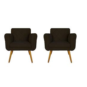 Jogo 02 Poltronas Estofadas Decorativas Para Consultório Isabella Suede Marrom- LM DECOR