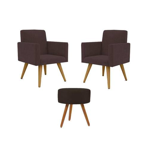 Jogo 02 Poltronas Decorativas + Puff Redondo Oferta Cor:marrom