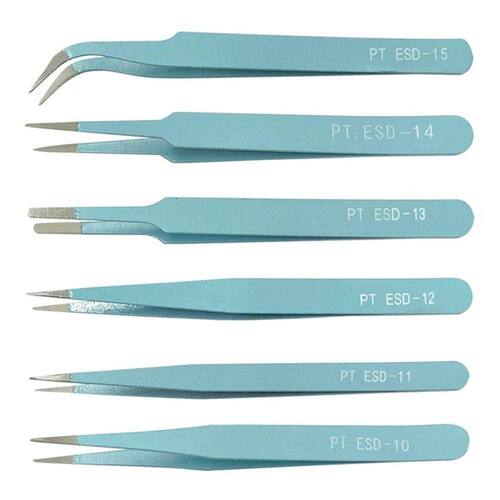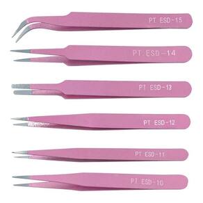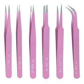Kit pinças 06 pinças todas em aço antiestética, revertida com tinta automotiva ideal para trabalhar com maquina eletrônica ,manipulação de pequenas peças. costura mosaico fuxico artesanato e muito mais .