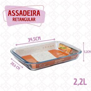 Jogo 1 Assadeira Vidro Medio Retangular 2,2L Assados Lasanha