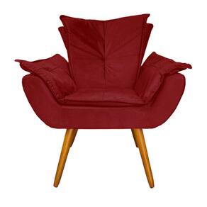Jogo 1 Poltrona e 1 Puff Para Sala Comercial Apolo Suede Vermelho Bordo - LM DECOR